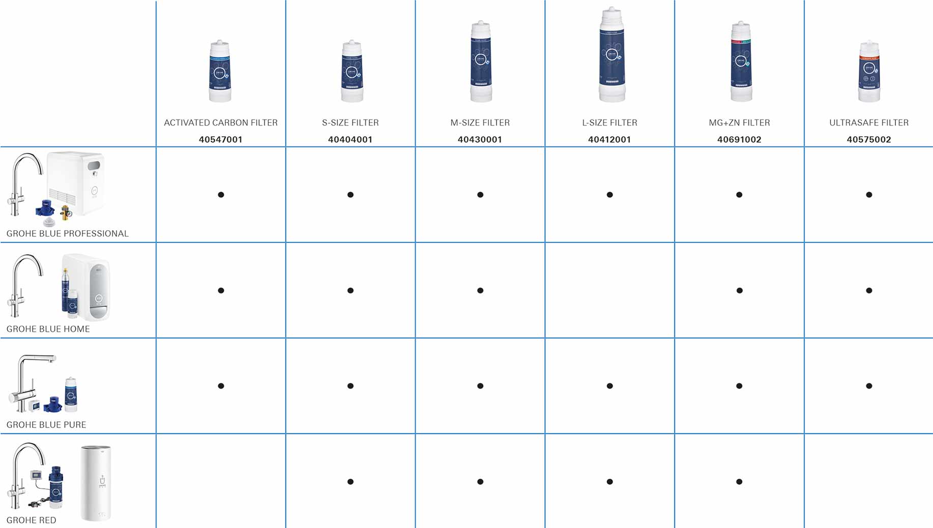 - compatible with GROHE Blue Home, GROHE Blue Professional and GROHE Blue Pure (only with flow meter)